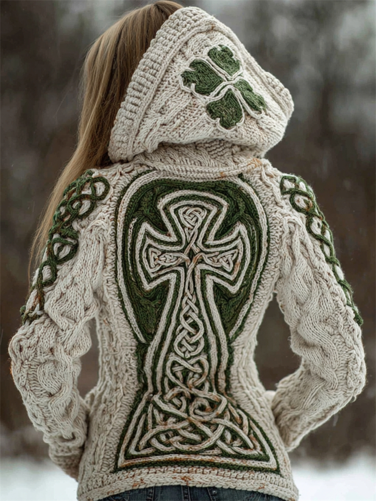 Vintage Shamrock & Celtic Cross Chunky Cozy Hooded Sweater