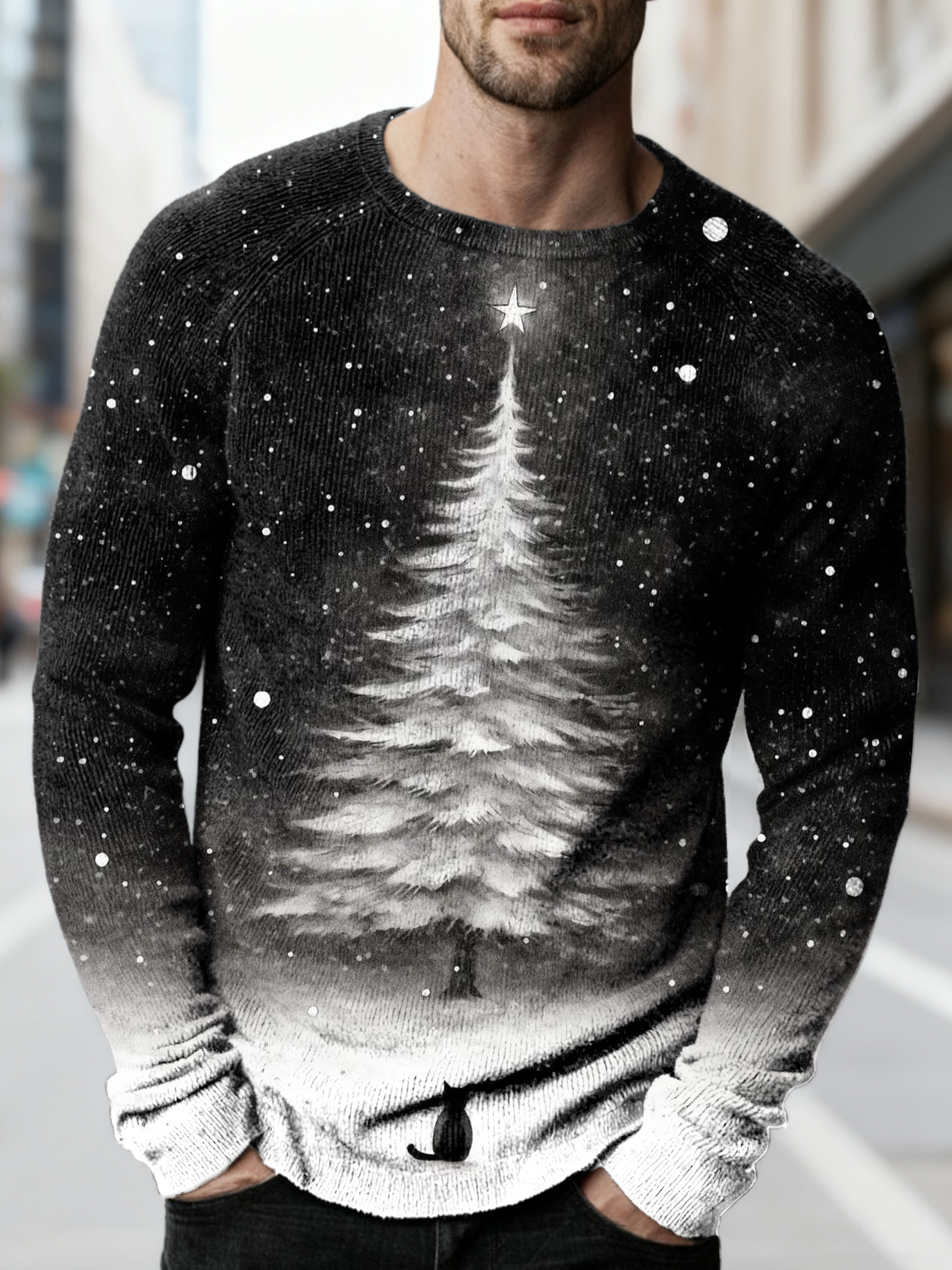 Waiting For Christmas Cat Art Print Long Sleeve Sweater