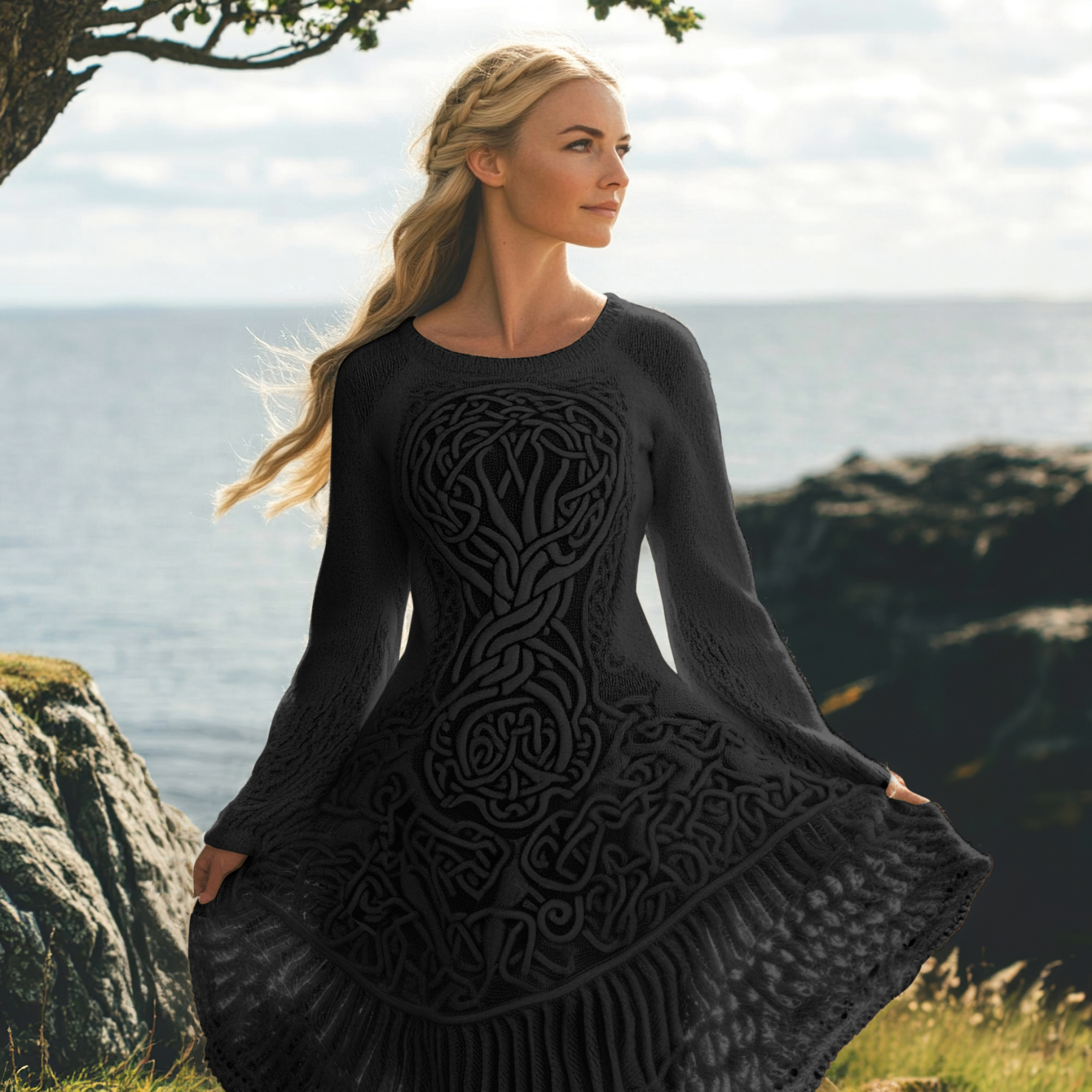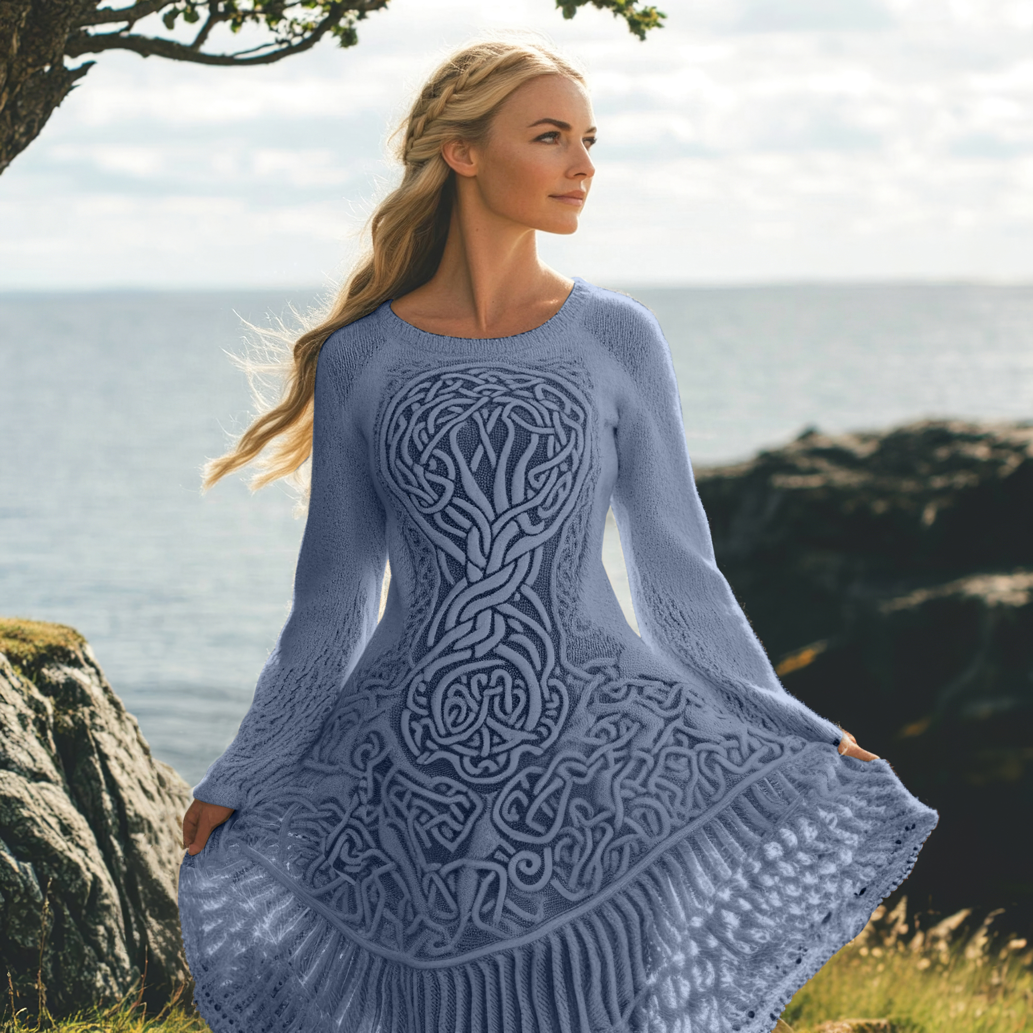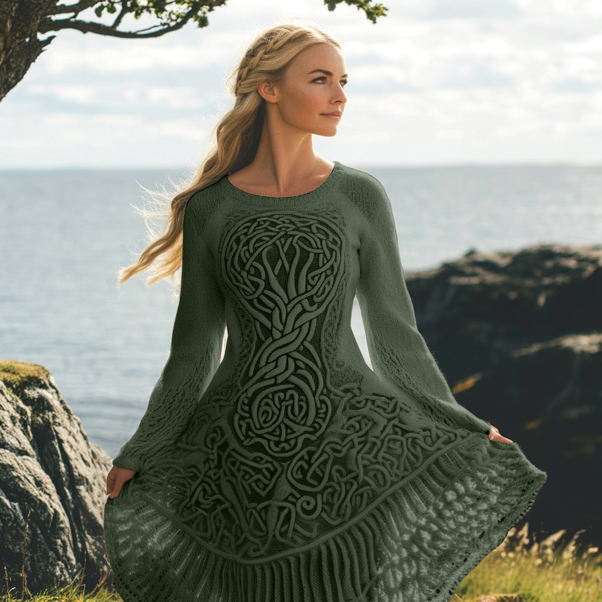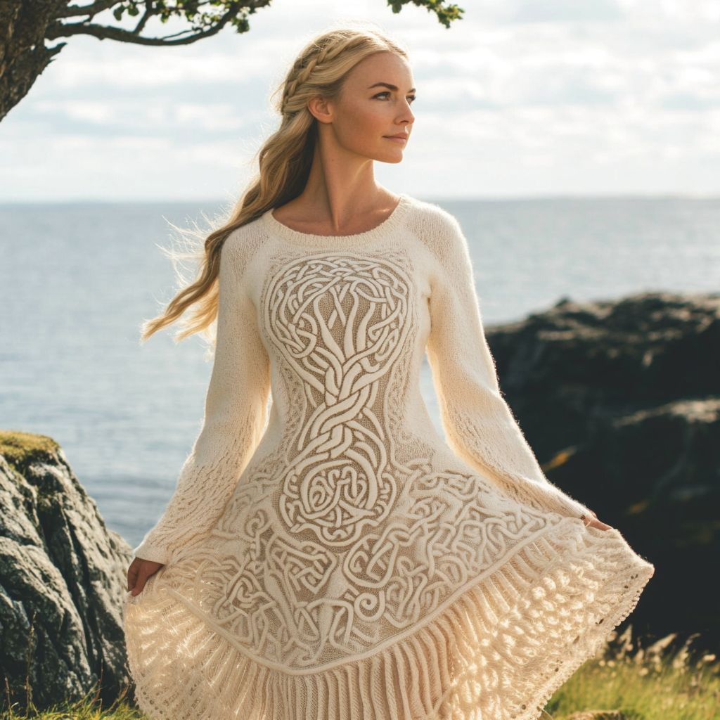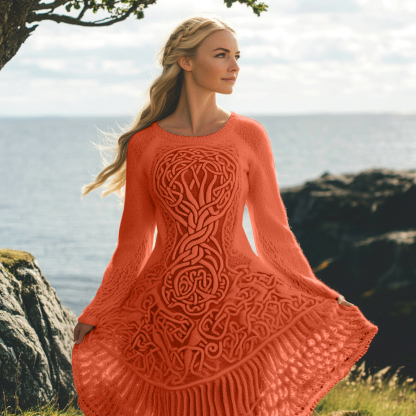 Women's Celtic Knot And Tree Of Life Long Sleeve Sweater Dress