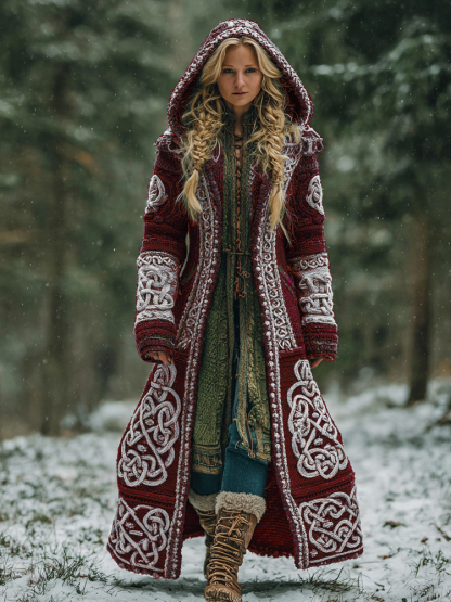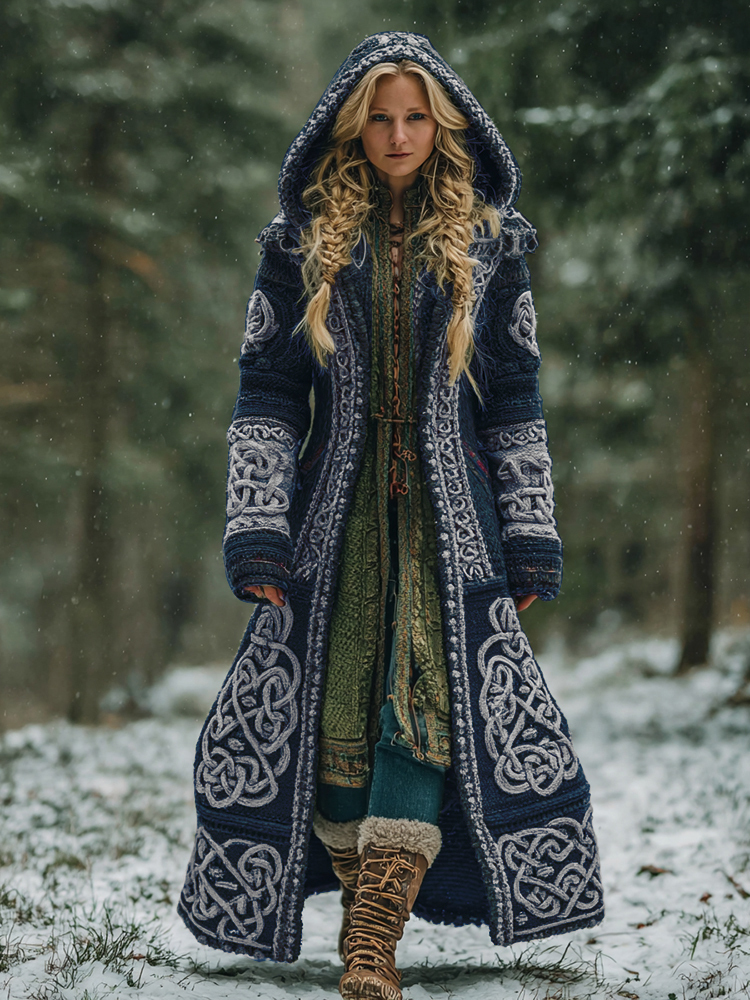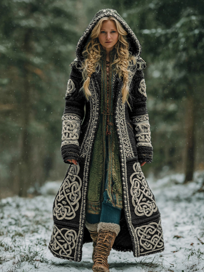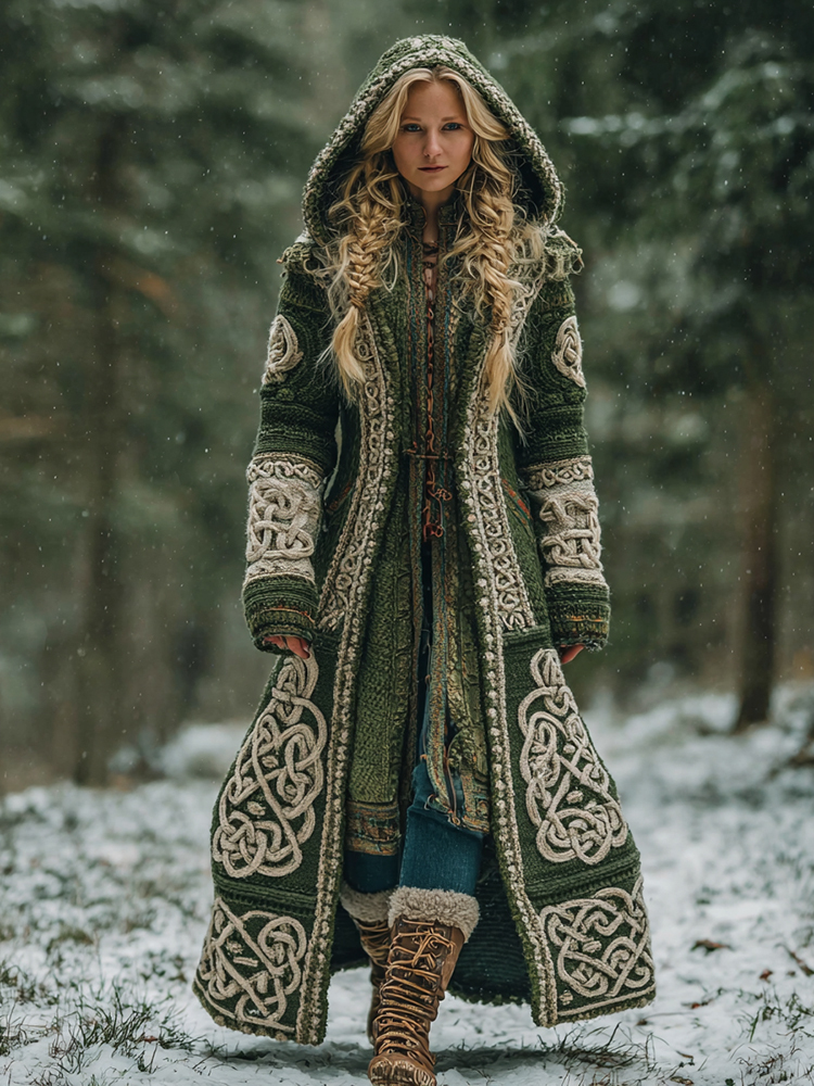 Women's Celtic Knot Irish Art Hooded Knit Cardigan