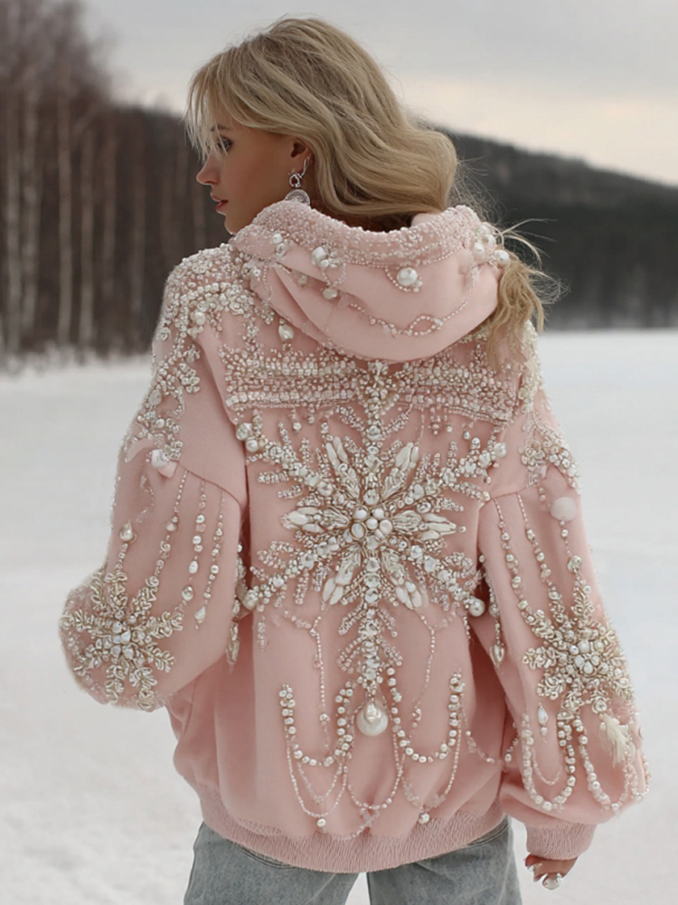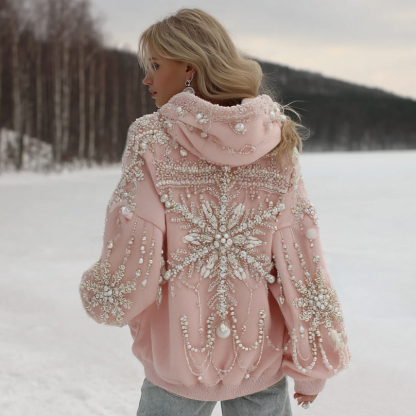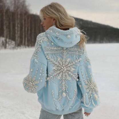 Women's Christmas Snowflake Pattern Long Sleeve Casual Hoodie 77d0