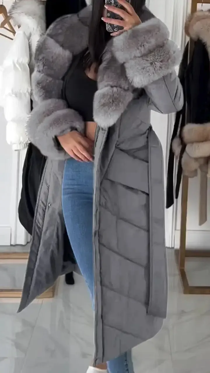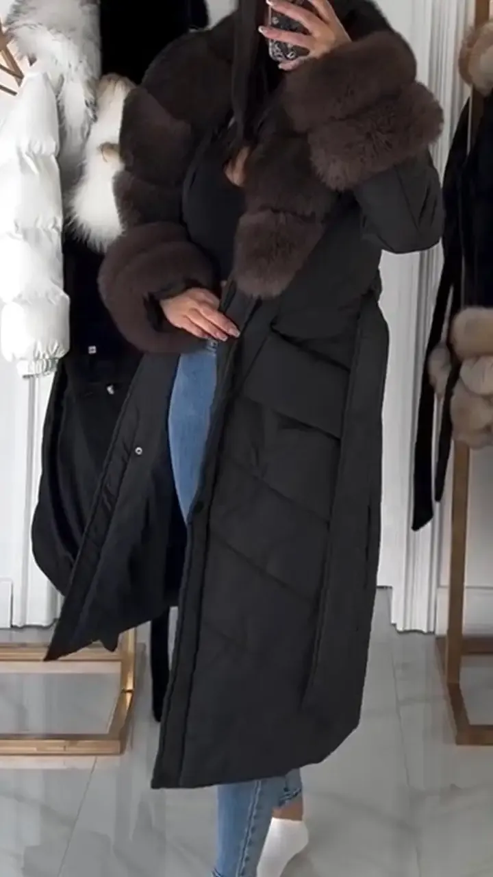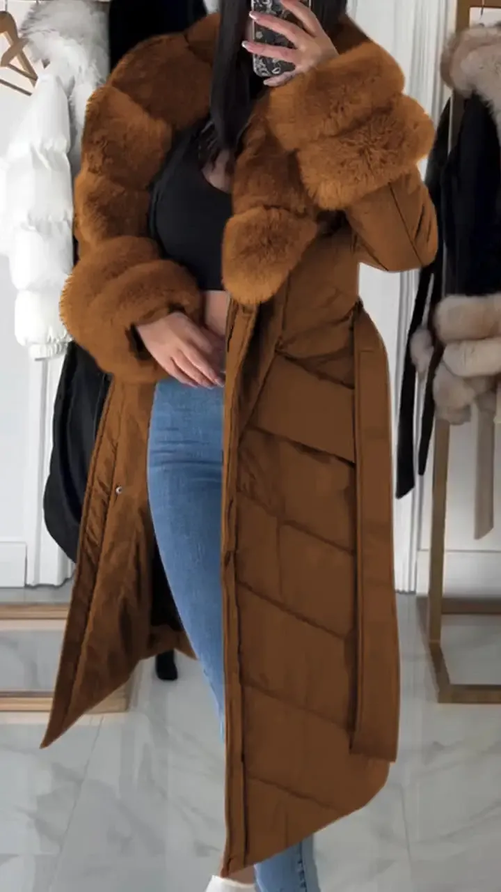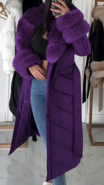 Women's Furry Long Warm Casual Cotton Coat