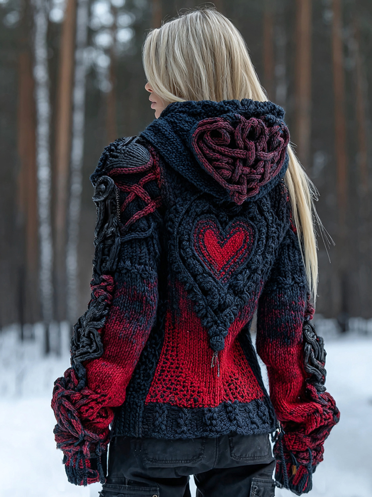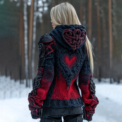 Women's Heart Art Cozy Knit Hooded Sweater