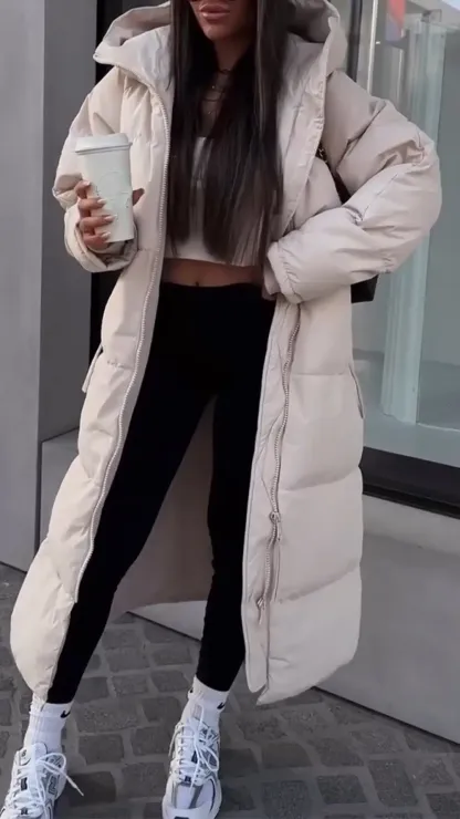 Women's Hooded Zippered Casual Long Warm Cotton Coat