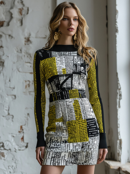 Women's Newspaper Environmental Awareness Art Cozy Knit Mini Sweater Dress