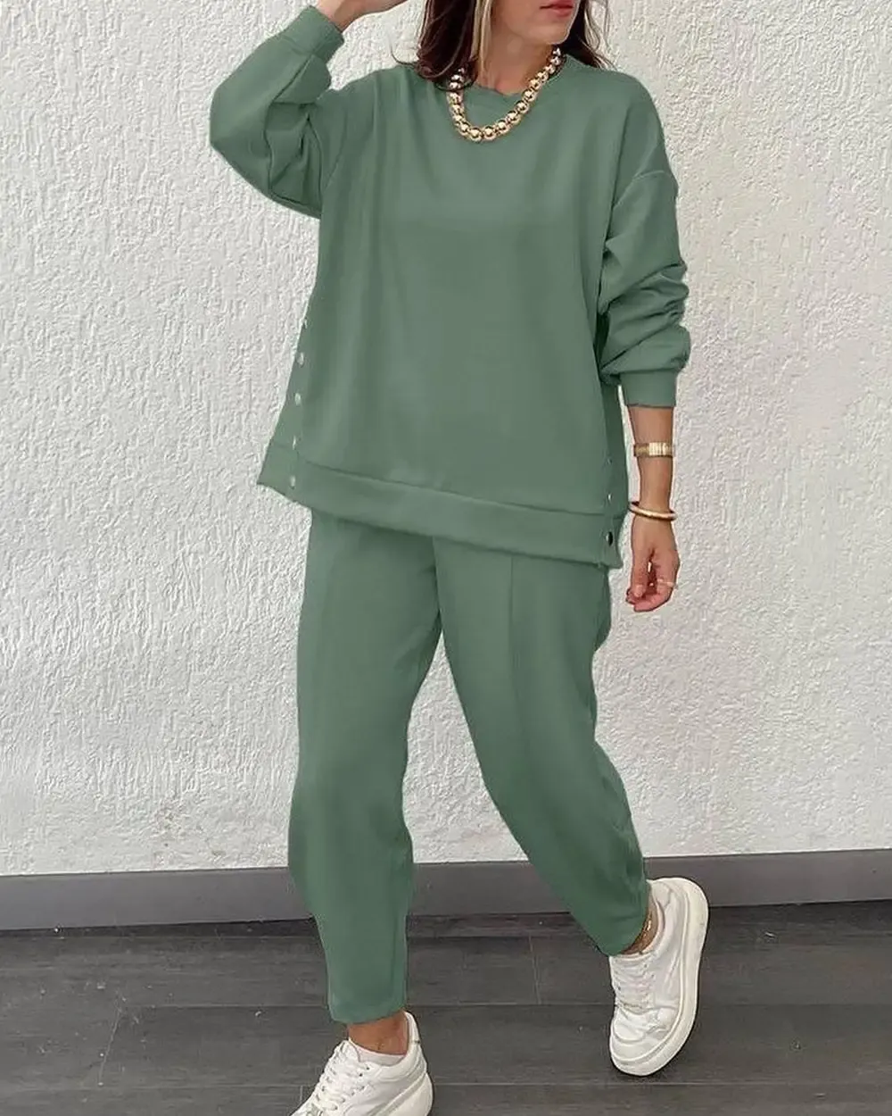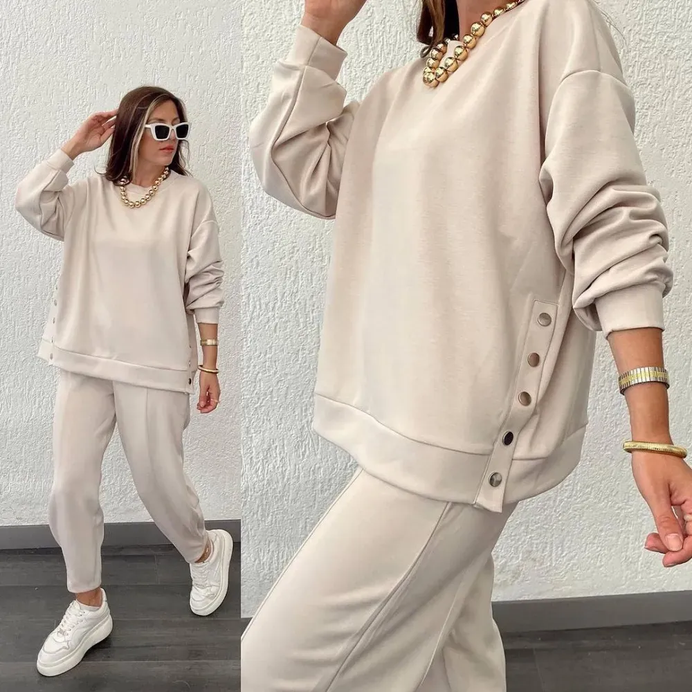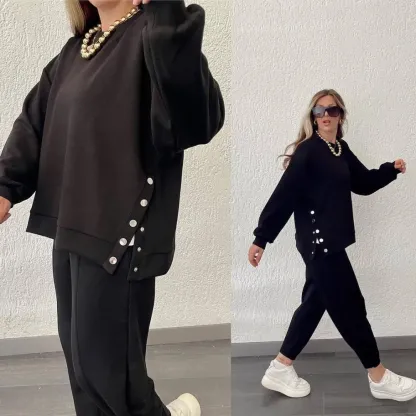 Women's Solid Color Fashion Casual Suit with Side Slits