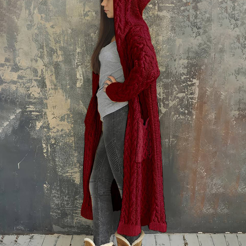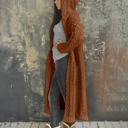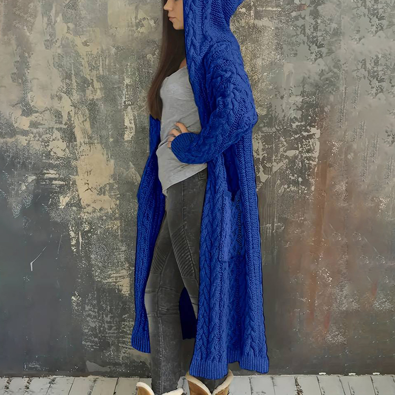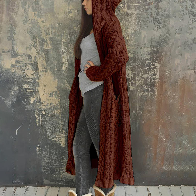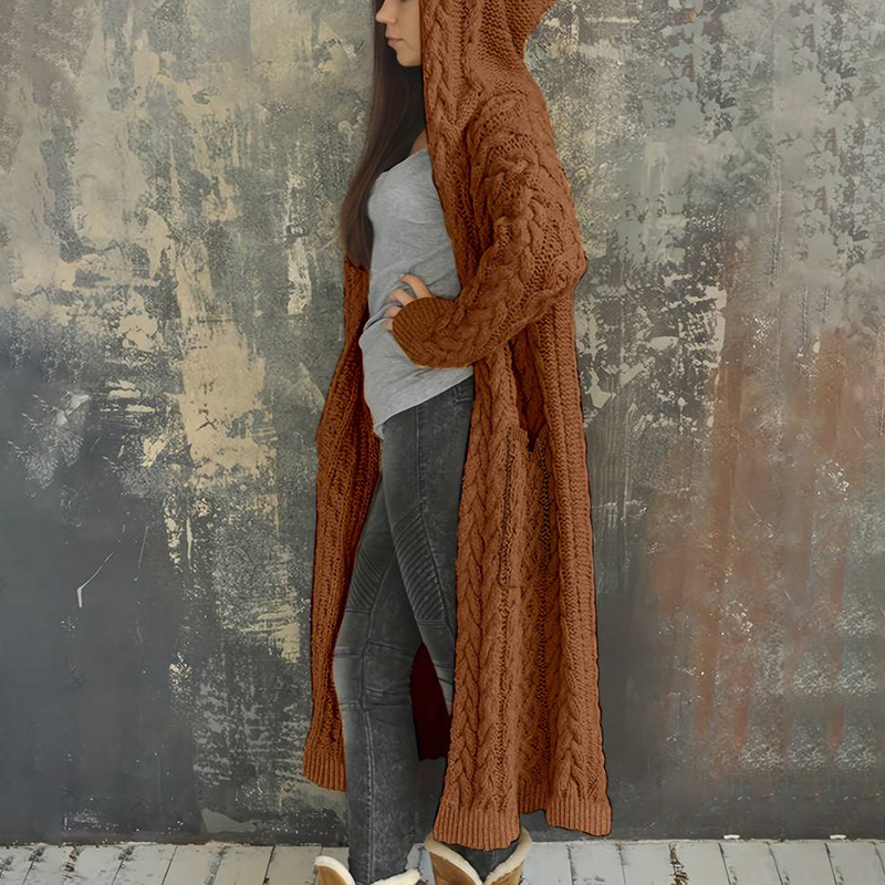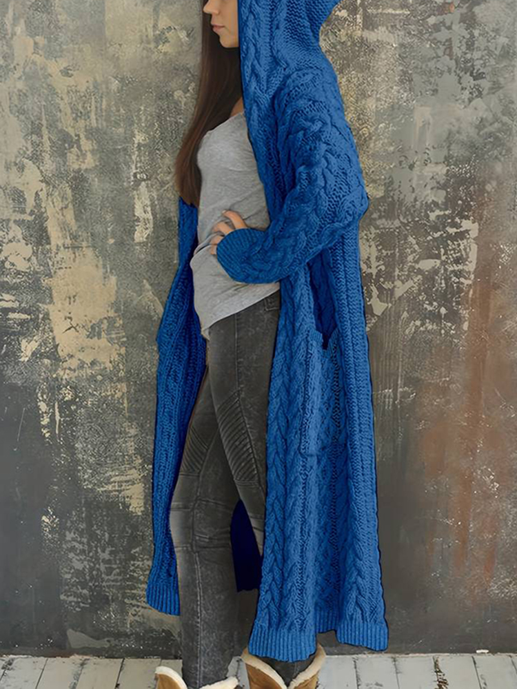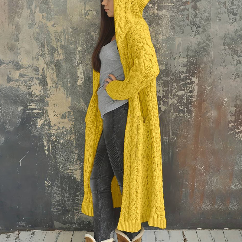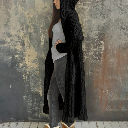 Women'S Solid Color Hooded Knitted Cardigan