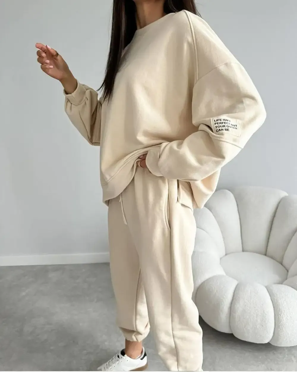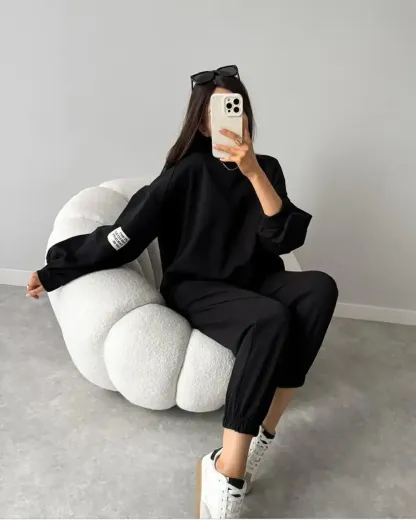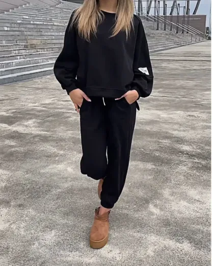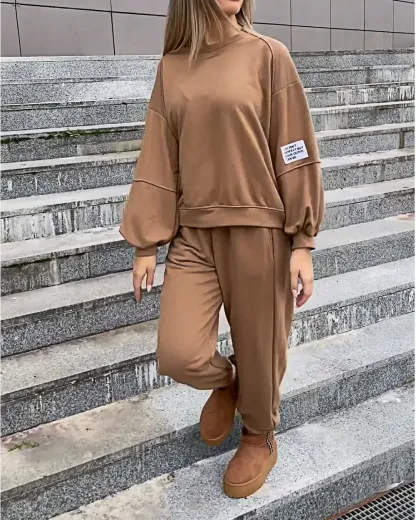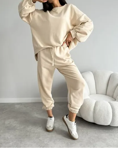Women's Two-piece Solid Color Loose Sweatshirt Suit
