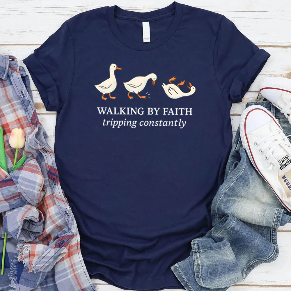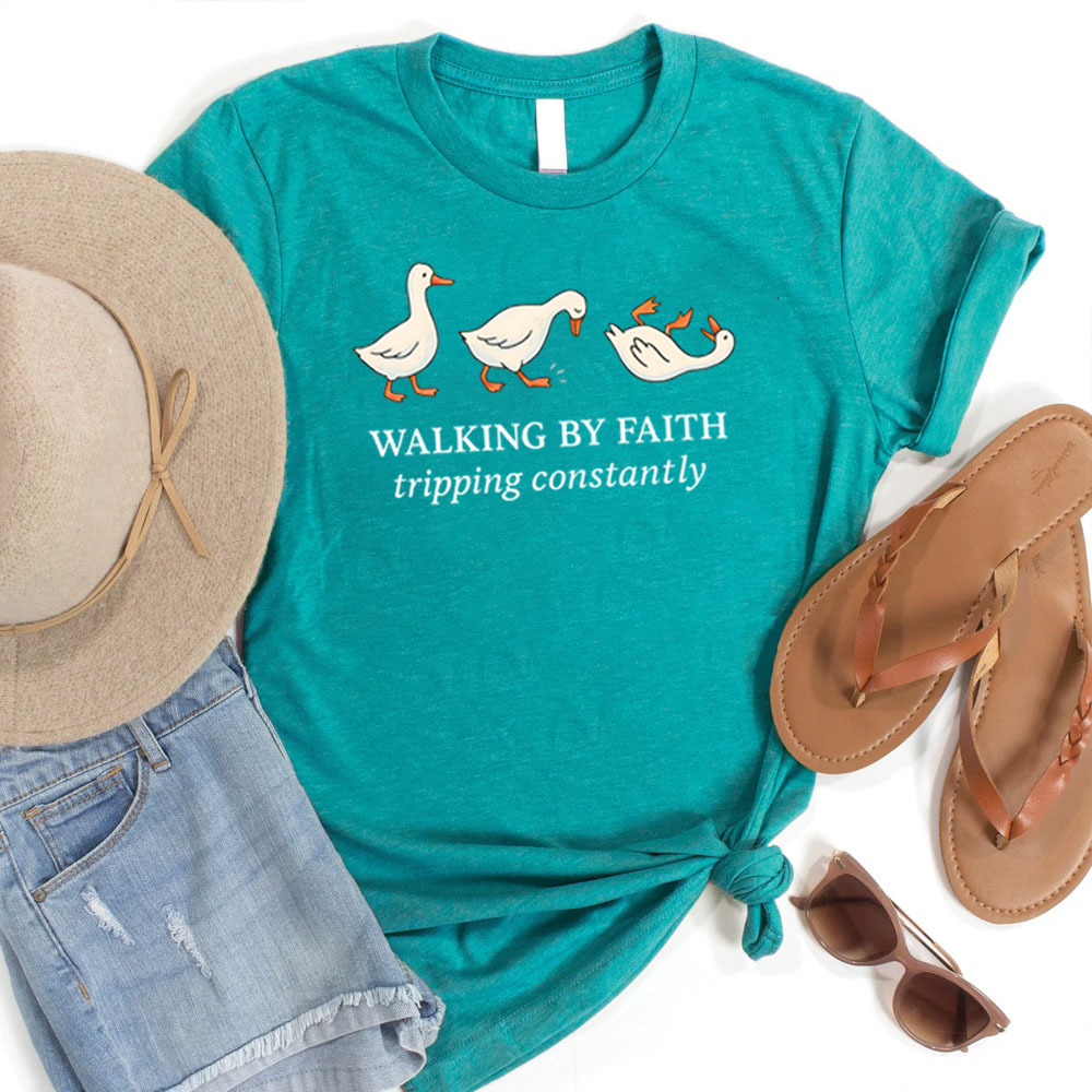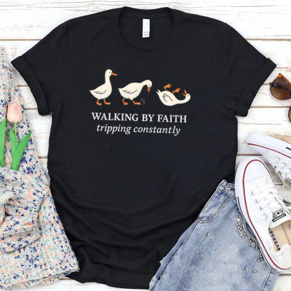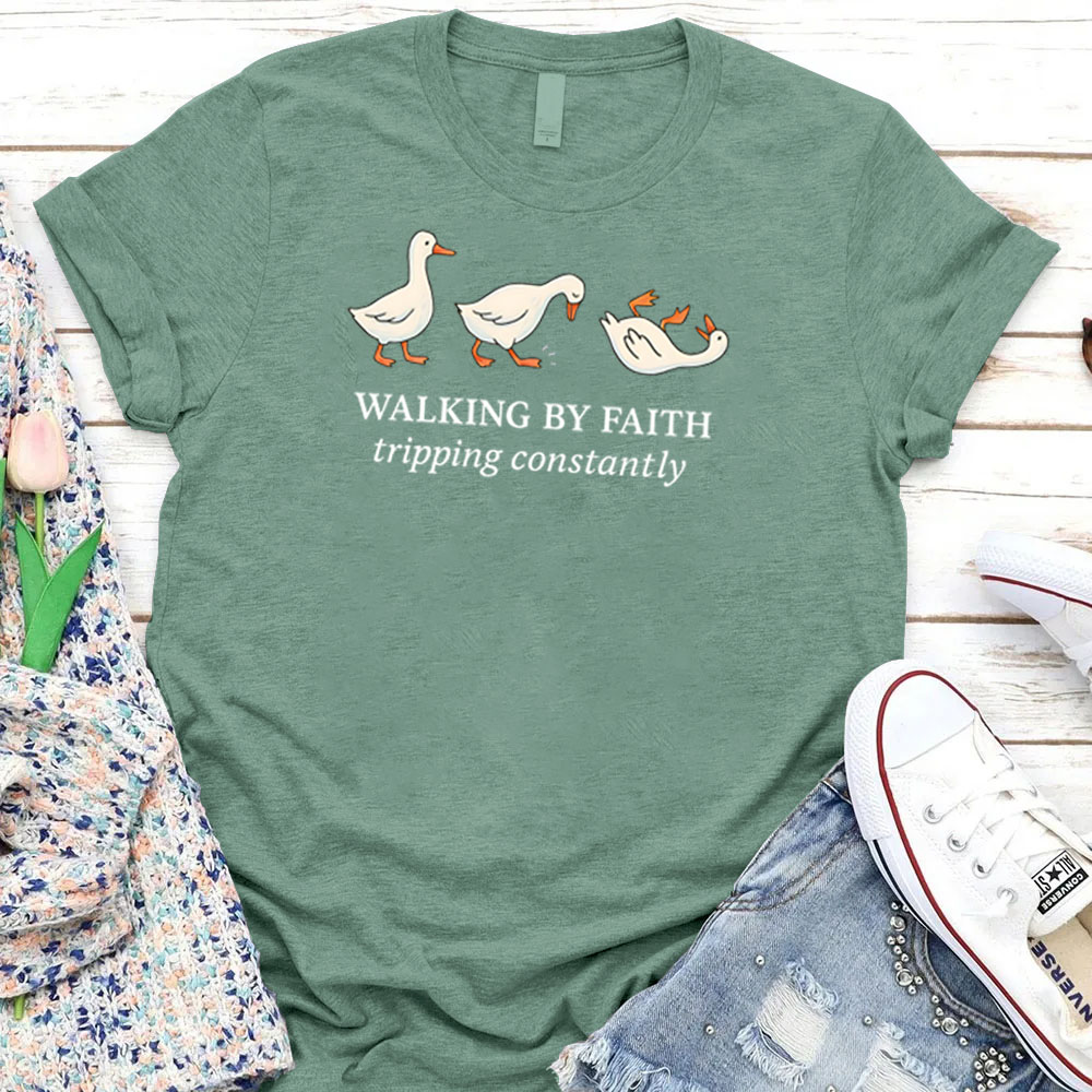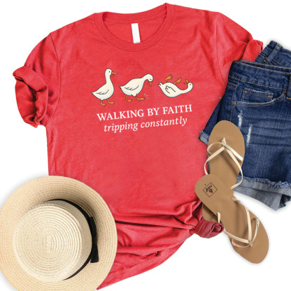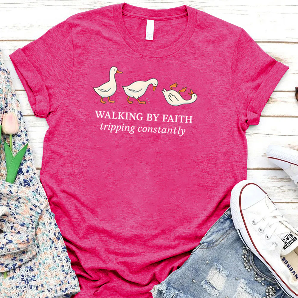 Women's Waking By Faith Tripping Constantly Pattern Round-Neck T-Shirt