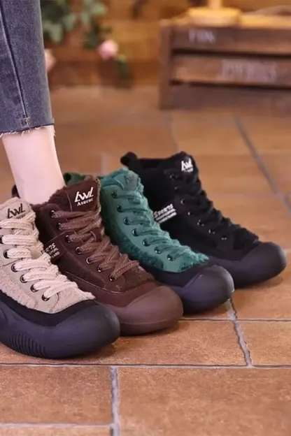 Women's Winter Closed Toe Plus Velvet Height Increasing Snow Boots